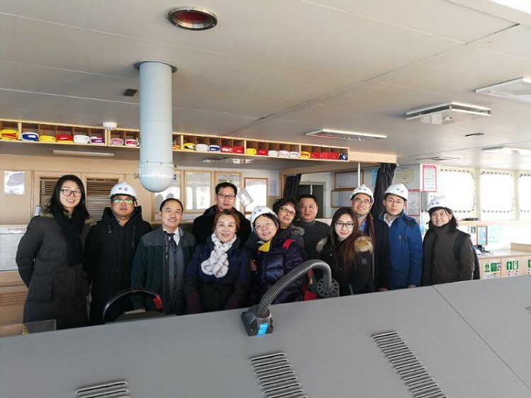 2018年1月11日,本會海事海商仲裁員專業(yè)委員會組織成員赴天津港參觀大型集裝箱輪——“天隆河”號。經(jīng)船長介紹該輪為巴拿馬極限型集裝箱船,船長294米,滿載吃水13.5米,載貨量63194噸,設(shè)計集裝箱箱位5100TEU(標準集裝箱)。專委會成員在參觀中親身體會了海運船舶的環(huán)境,在與船員交流中大家實地了解到海事運輸中可能存在的風(fēng)險及法律問題。此次活動得到了中交第一航務(wù)工程局有限公司的大力支持。