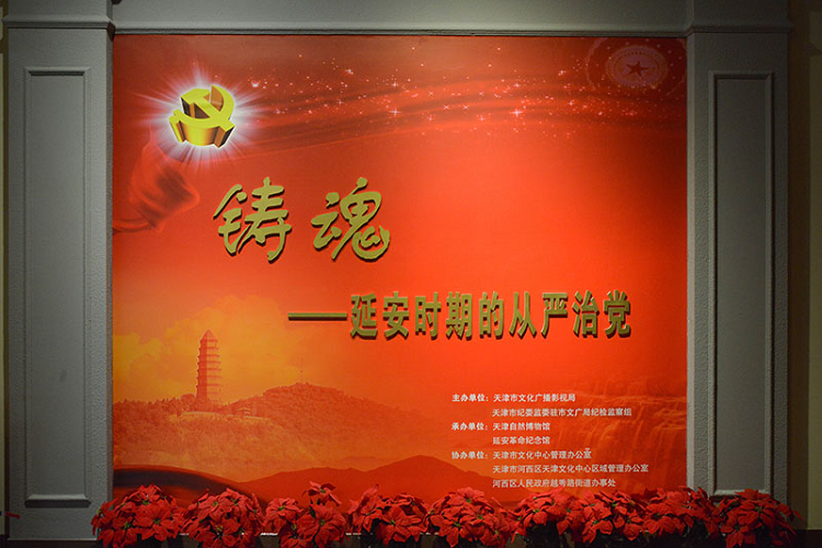 “鑄魂——延安時期的從嚴(yán)治黨”由天津市文化廣播影視局、天津市紀(jì)委監(jiān)委駐市文廣局紀(jì)檢監(jiān)察組主辦。展覽系統(tǒng)展示了延安時期中國共產(chǎn)黨從組織建設(shè)、思想建設(shè)、制度建設(shè)、作風(fēng)建設(shè)四個方面大膽探索、勵精圖治,成功探索出一條以思想教育為前提、以黨性教育為基礎(chǔ)、以制度建設(shè)為保障、以群眾監(jiān)督為特色的從嚴(yán)治黨之路。