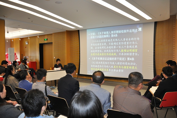 應(yīng)邀講座的嘉賓是本會(huì)仲裁員、天津師范大學(xué)法學(xué)院副院長郭小冬教授。郭教授清華大學(xué)民事訴訟法學(xué)博士畢業(yè),主攻研究方向?yàn)槊袷略V訟法學(xué)、證據(jù)法學(xué)以及證據(jù)保全。擔(dān)任教學(xué)研究工作之外,還擔(dān)任天津市人大常委會(huì)立法咨詢委員,天津市人民政府法律顧問,天津市人民政府法制智庫專家,天津法院案例研究中心專家委員會(huì)委員。主持過多項(xiàng)國家級和省部級科研項(xiàng)目,理論研究和法律實(shí)踐經(jīng)驗(yàn)豐富。此次講座,郭教授綜合理論分析、法律條文解釋并結(jié)合案例,深入淺出地從證明對象的確定,證明的方法和順序,證據(jù)的審查和判斷三個(gè)方面為大家講解證據(jù)裁判問題,并提出了一些司法適用中的問題供大家思考。講座內(nèi)容極具實(shí)踐性及指導(dǎo)性,現(xiàn)場聆聽講座的律師、企業(yè)代表以及本會(huì)工作人員都深受啟發(fā)。