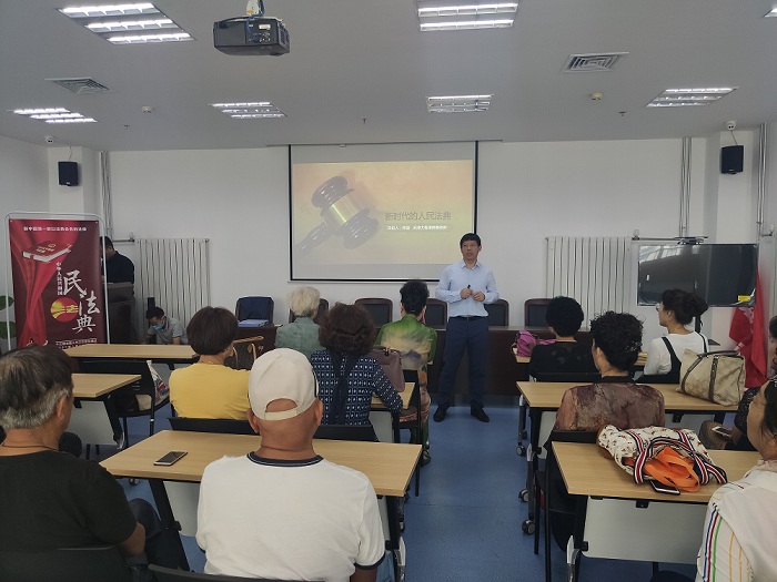 本次活動(dòng)由天津仲裁委員會(huì)仲裁員、天津大有律師事務(wù)所黨支部書記肖劍律師以《新時(shí)代的人民法典》為題進(jìn)行講座活動(dòng)。針對(duì)《民法典》的立法背景,介紹了民法典的主要內(nèi)容,并針對(duì)居民的需求,著重講解了物權(quán)編、婚姻家庭編、繼承編等?!睹穹ǖ洹坊貞?yīng)了我們對(duì)人類所面對(duì)的一系列基本問題的看法,并以此來(lái)回答中國(guó)之問和時(shí)代之問,如何看待人、如何看待家、如何看待社會(huì)、如何看待國(guó)家、如何看待人類、如何看待自然,民法典給出了屬于我們民族自己的回答。