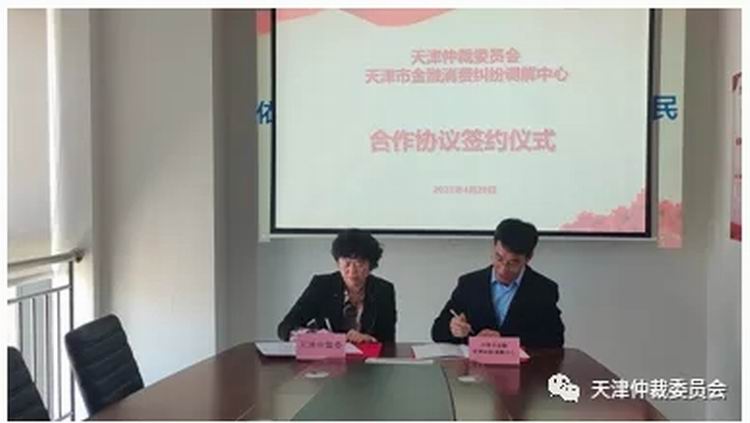 4月28日,天津仲裁委員會金融仲裁中心(下稱金融仲裁中心)與天津市金融消費糾紛調(diào)解中心(下稱調(diào)解中心)簽署《金融消費糾紛多元化解機制建設(shè)合作框架協(xié)議》。金融仲裁中心劉宇主任與調(diào)解中心崔英劍主任分別代表雙方在協(xié)議書上簽字。