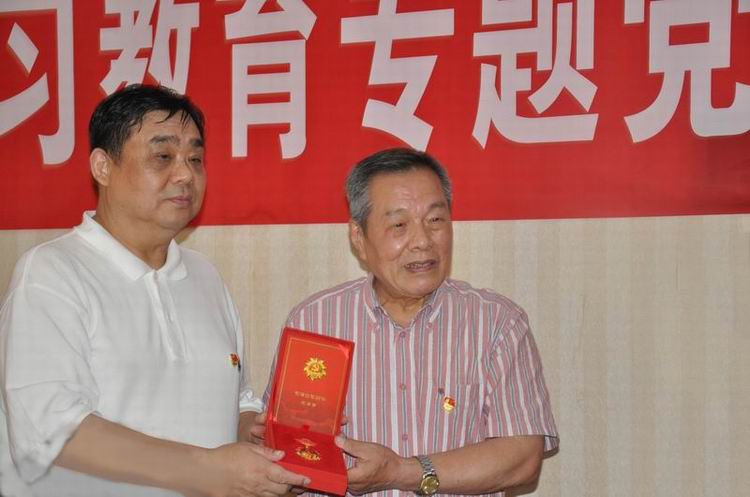首先舉行了“光榮在黨50年”紀(jì)念章頒發(fā)儀式。翟國良書記為已退休的老黨員劉世春同志頒發(fā)了“光榮在黨50年”紀(jì)念章。劉世春同志回憶了入黨以來的個(gè)人經(jīng)歷,并表示在黨的培養(yǎng)下才能有今天的成績和幸福,作為入黨50周年的老黨員、新中國的同齡人,能夠榮幸的獲得“光榮在黨50年”紀(jì)念章,既是一種榮譽(yù),也是黨對老黨員的一種期待,激動地表示要退休不退志,離崗不離黨,始終如一以共產(chǎn)黨員的標(biāo)準(zhǔn)要求自己,永遠(yuǎn)跟黨走,為年輕同志作出榜樣。