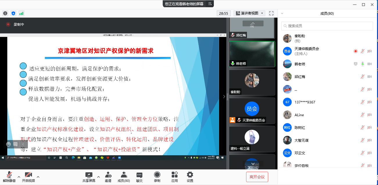 為落實(shí)中辦國辦《關(guān)于強(qiáng)化知識(shí)產(chǎn)權(quán)保護(hù)的意見》中的精神,深入推進(jìn)“我為群眾辦實(shí)事”實(shí)踐活動(dòng),本會(huì)知識(shí)產(chǎn)權(quán)國際仲裁中心聯(lián)合天津市知識(shí)產(chǎn)權(quán)保護(hù)中心、天津市經(jīng)開區(qū)知識(shí)產(chǎn)權(quán)局、天津市知識(shí)產(chǎn)權(quán)保護(hù)協(xié)會(huì)于11月5日共同舉辦線上《專利法》專題講座。