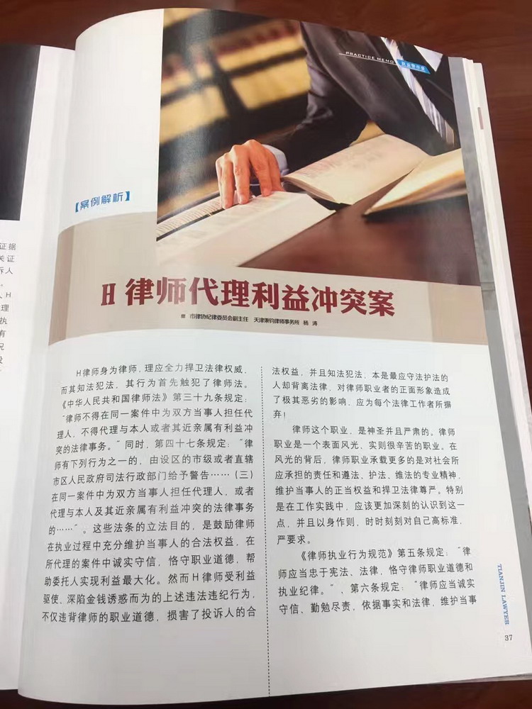 H律師身為律師,理應全力捍衛(wèi)法律權威,而其知法犯法,其行為首先觸犯了律師法。《中華人民共和國律師法》第三十九條規(guī)定:“律師不得在同一案件中為雙方當事人擔任代理人,不得代理與本人或者其近親屬有利益沖突的法律事務。”同時,第四十七條規(guī)定:“律師有下列行為之一的,由設區(qū)的市級或者直轄市區(qū)人民政府司法行政部門給予警告………(三)在同一案件中為雙方當事人擔任代理人,或者代理與本人及其近親屬有利益沖突的法律事務的………”。這些法條的立法目的,為的是鼓勵律師在執(zhí)業(yè)過程中充分維護當事人的合法權益,在所代理的案件中誠實守信,恪守職業(yè)道德,幫助委托人實現(xiàn)利益最大化。然而H律師受利益驅使、深陷金錢誘惑而為的上述違法違紀行為,不僅違背律師的職業(yè)道德,損害了投訴人的合法權益,并且知法犯法,本是最應守法護法的人卻背離法律,對律師職業(yè)者的正面形象造成了極其惡劣的影響,應為每個法律工作者所摒棄!