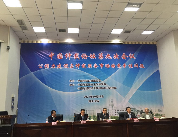 2017年10月28日,本會應(yīng)邀參加由中國仲裁論壇組委會主辦,中南財(cái)經(jīng)政法大學(xué)法學(xué)院、中南財(cái)經(jīng)政法大學(xué)律師與公證學(xué)院承辦的第九屆中國仲裁論壇會議,會議主題為“公信力建設(shè)與仲裁服務(wù)市場的競爭性問題”。本屆論壇匯集了全國近三十家仲裁機(jī)構(gòu)的代表、高校教師、律師、企業(yè)法務(wù)人員等二百余名活躍在仲裁屆的人士。本會秘書齊拓女士、李增艷女士參加了會議。